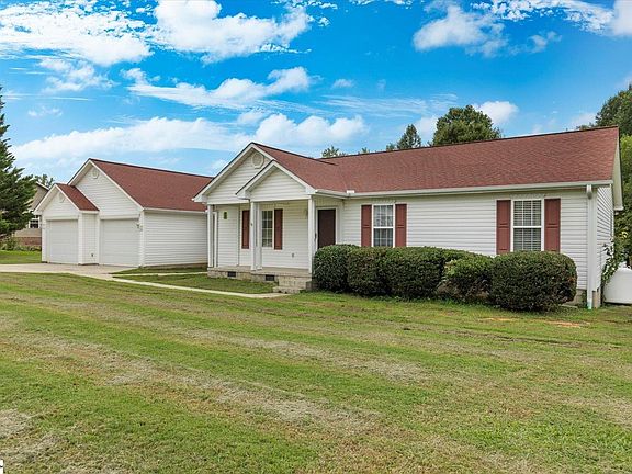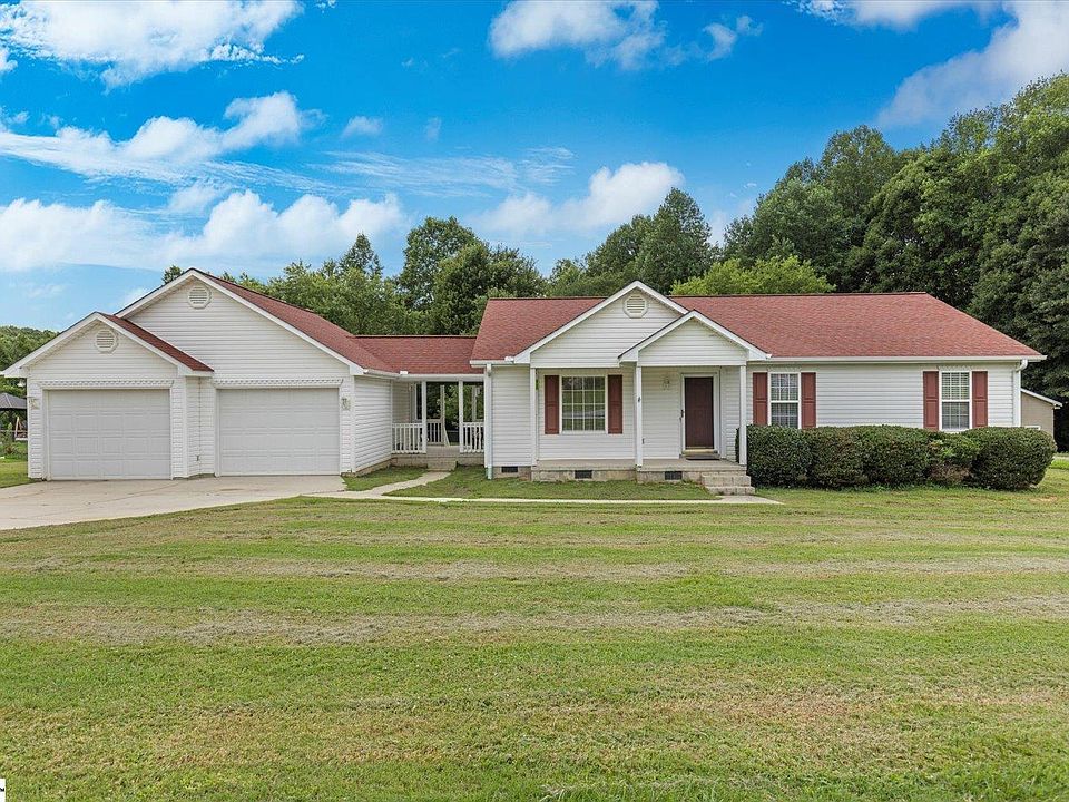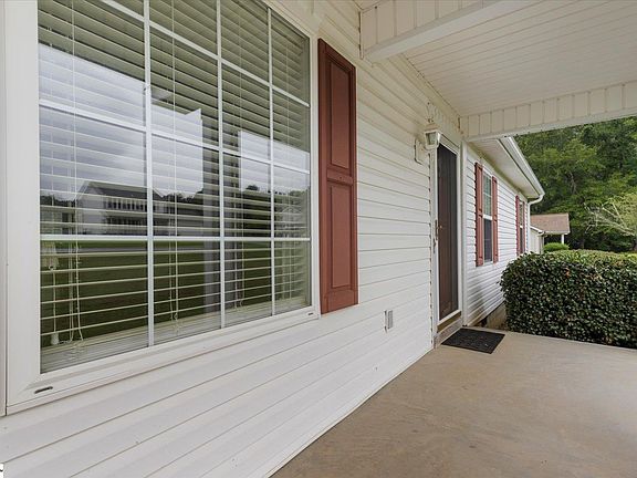 Don’t miss your chance to own property and live in booming Travelers Rest; home to the Swamp Rabbit Trail and a town recently named by Travel + Leisure magazine among the top 15 BEST in the COUNTRY for a summer vacation. This single-story low-maintenance living home’s curb appeal is eye-catching with a charming rocking-chair front porch and attached 2 bay garage that is separated by a breezeway/covered side porch. Step inside to be greeted by an open concept floorplan with a soaring cathedral ceiling, cozy rock fireplace, large windows and French doors that allow the natural light to fill up the space. The kitchen and breakfast room feature a closet style pantry, an abundance of cabinets for storage, ample room for a dining table and bar for quick meals or socializing. You’ll also discover LVT flooring throughout the home along with 2-inch blinds, a fresh coat of paint in most rooms, pull-down attic access (new stairs), lots of closets, 3 spacious bedrooms and laundry room conveniently located off the secondary bathroom. The primary bedroom has TWO closets and a full bathroom with linen closet. Step outside onto your back deck to enjoy the flat yard that spans OVER HALF AN ACRE and faces west so you can capture the beautiful SC sunsets. The oversized garage is 25’ deep which can easily accommodate a larger car/truck or recreational vehicle and makes the perfect spot for the hobbyist to work with a 220 outlet. Updates include: Water heater < 3 years old; 3 Ton Bosch Air Handler with 7.5 KW Heat Kit installed late 2018; Architectural roof with 30-year shingle installed 2010; Septic pumped < 2 years ago; New downspouts and underground drainage pipes. Best of all… there is no HOA, there are less than 20 homes on the cul-de-sac and location is USDA 100% financing eligible.