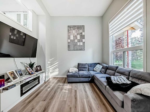 Price reduced!! Welcome Home! This 3 bedroom unit is looking for new owners! Immaculate and pride of ownership! is very evident in this gorgeous unit. As you enter you are greeted by a large foyer that could easily accommodate coats and footwear. This home offers Convenient main level bedroom/or Den, that can be used for guests with convenient 2pc bath. Up a flight of stairs brings you to the beautiful chef's kitchen with new white shaker style cabinets, spacious dining room for family gatherings, built in pantry, tiled back splash, and quartz counter tops. This home has undergone with major renovation in 2024 that includes stainless steel appliances, New Luxury vinyl plank throughout the home, all new baseboards and casings, all new light fixtures, new pot lights throughout, and Custom blinds. The living room is flooded with natural lighting with 14-foot ceilings for that grand open space. Up another flight of stairs brings you the spacious primary bedroom with large windows and a good-sized closet and an amazing balcony to enjoy your morning coffee. Large second bedroom and a 4pc bath with a corner jetted tub. Single detached garage with new garage opener. Enjoy the blend of City convenience and small-town serenity with only 20min to the City Core. Nearby access playgrounds, green space, Sheep River Provincial Park, D'Arcy Ranch Golf Club, Shopping, Public Transportation, and all levels of Schools. This home has been lovingly cared for and is ready for new owners.
