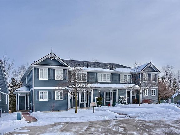 Collingwood's west end. 2 bedroom, 4 bath condo close to skiing! This desirable layout offers open concept kitchen and living room on main level. Gas fireplace. Walk out to balcony. 2 piece powder room. Upper level has hardwood floors, two bedrooms both with full ensuite baths. Fully finished walk out basement includes rec room, full bath and laundry. Amenities include in ground pool and trails. Covid concerned seller - Showings are virtual using the multimedia and photos. Offers can be conditional upon viewing. Offers to be received February 16th by 2:00pm with a 24 hour irrev. please. NO IN PERSON SHOWINGS!!!