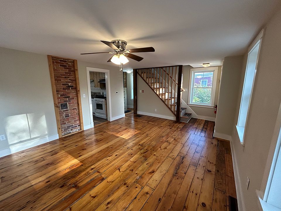 This building recently received an extensive renovation including updated bathroom, windows, insulation, lighting, and appliances. Beautiful craftsmanship details in the stairs, railing, exposed beams, closet doors, etc give this place an overall Modern Rustic feel. The kitchen has a gas stove, a dishwasher, and marble countertops. The utility room has hook ups for your washer/dryer. There are 2 bedrooms on the second floor and 1 bedroom on the 3rd floor or use one of the bedrooms as a large office. This home has its own private entrance and private parking.