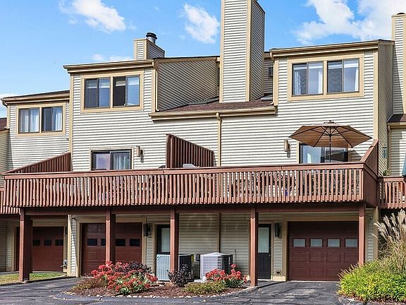 Welcome to River's Edge, a sought-after riverside community offering a peaceful setting just steps from the vibrant Collinsville village. This sought-after unit is one of just six in the community with a private attached garage, and it also offers a deck w/ relaxing views of the tennis courts and wooded landscape. Step inside through a spacious open foyer to the main level where the remodeled kitchen boasts granite countertops, porcelain tile floors, and plenty of cabinet space. Hardwood floors connect the dining area and living room, where vaulted ceilings and a cozy gas fireplace create a bright and inviting atmosphere. Upstairs, the primary bedroom includes a renovated ensuite bath and double closet. A second bedroom and full bath complete this level. All three bathrooms were updated in 2014. A charming spiral staircase leads to a versatile third-floor flex space that can serve as a third bedroom, home office, or hobby area. A cedar closet adds abundant storage. The lower garden level offers add'l flex space for home gym, office, or bedroom along with a separate laundry room. The attached garage makes coming and going easy, while a new carrier two-stage HVAC system (2019) provides year-round comfort. River's Edge residents enjoy exceptional amenities, including tennis courts, a clubhouse, a pool, & private access to the Farmington River. Spend your days swimming, tubing, kayaking, fishing, or simply relaxing by the water--nature and recreation right outside your door!
