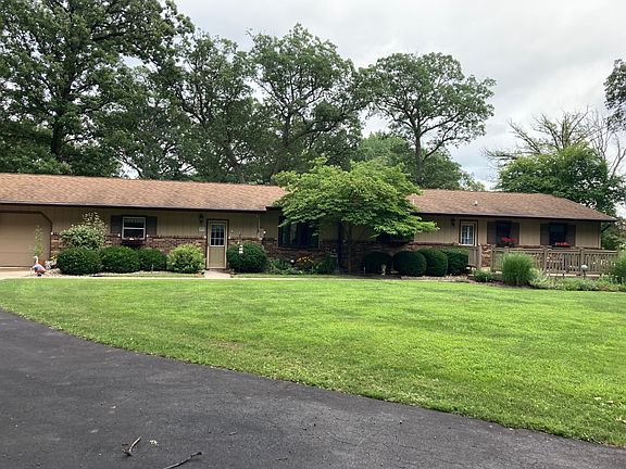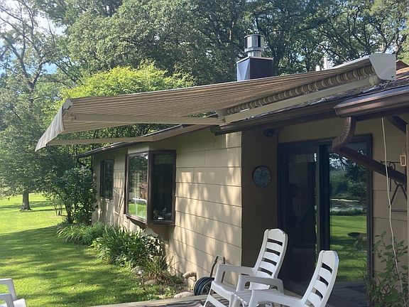 Lake front property situated on 5.28 acres located on the edge of town with mature trees & beautiful landscaping. This ranch home features 3 bedrooms, 2 baths, living/family room with gas fireplace, eat in kitchen, two decks (back deck has a retractable awning), attached 2 car heated garage and a detached 1.5 car garage. If your dream is to enjoy peaceful living you have found it. Showings start Saturday, August 21, 2021. $600 year fee for Road & Lake maintenance.