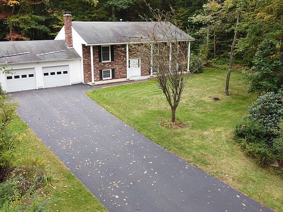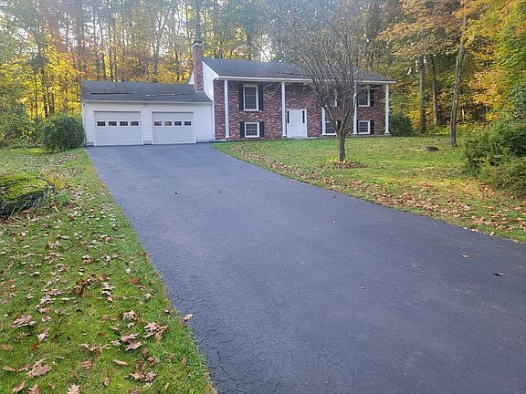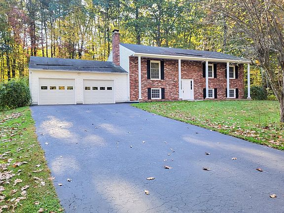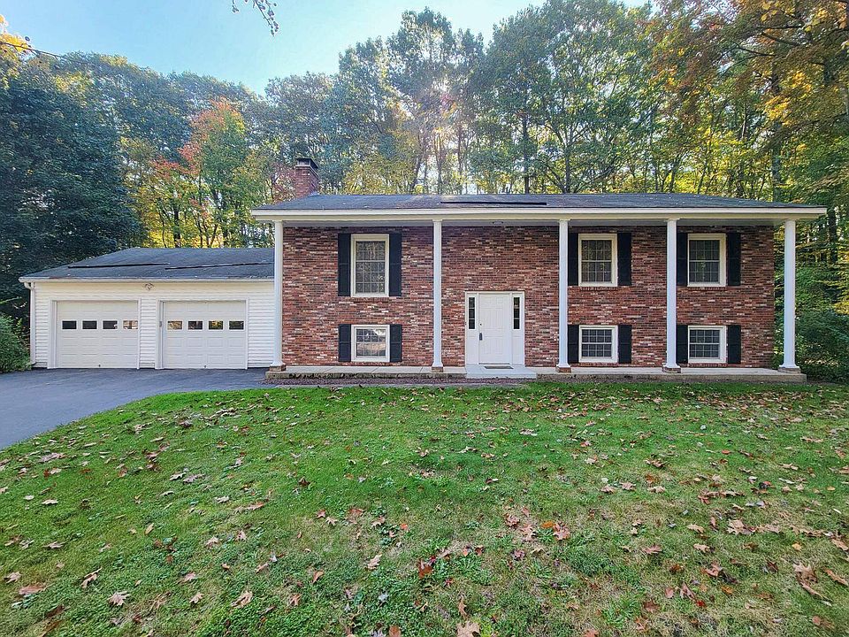 Beautifully set on a cul-de-sac street, this home boasts new carpet, new interior paint, and has an updated blonde eat-in kitchen which opens to a private back yard deck. Fireplaced living room for that cool evening glow, lovely bright dining room, primary bedroom with bath, 2 additional bedrooms and full bath complete the upper level. The lower level family room has daylight windows, an office, den, and laundry room with extra storage space as well as direct access to the oversized two car garage. There is a wood shed filled with wood for the fireplace and wood stove. Seller is graciously leaving the ride-on mower for the new owner's use!