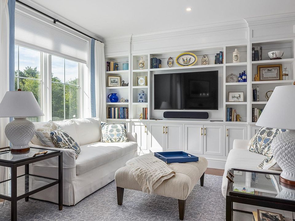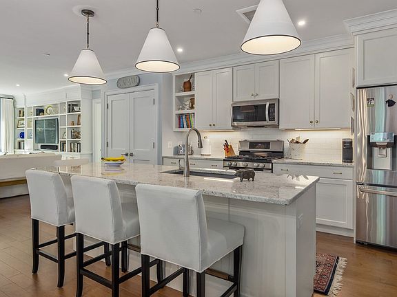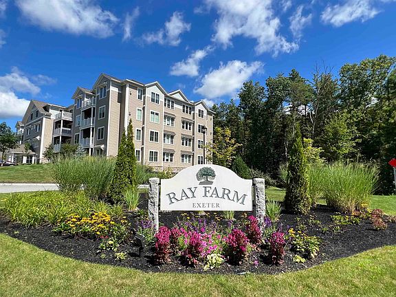One-level living in an exquisitely appointed CORNER UNIT with PRIVATE VIEWS throughout, including from the covered porch. This Ray Farm home is a beautiful example of designer-inspired living - with a soft color palate throughout and custom built-ins that not only define additional living space, but elevate the existing space as well. Designed & built by a local craftsman, this unit offers exceptional custom cabinetry in its expansive wall of built-ins and pillar defined work space. This 2 bed, 2 bath home affords enough room to entertain with ease or relax and unwind in a peaceful setting. Upgraded features include window shades, crown molding, an eight foot granite island, gas range, stainless appliances, subway tile backsplash, wood flooring & more! The guest bedroom has direct, private access to the main bath. A gas fireplace & dedicated home office space round out this home nicely. This unit has plenty of storage, including a double kitchen pantry, four large closets in the primary suite including a spacious walk-in, in addition to locked storage in the garage. Take advantage of all this special unit has to offer - including excellent proximity to the well appointed club house, right next door to this building, offering a work-out room, yoga studio, kitchen, screened porch and BBQ area! Close to area hospitals, shopping, restaurants & downtown Exeter. Ray Farm is a 55+ Active Adult Community.