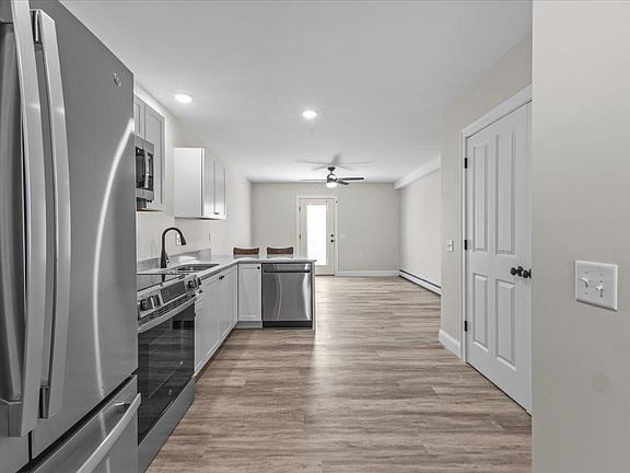 Welcome to Unit #103 at Willys Lane, a brand-new 2 bedroom flat designed for easy single-level living with modern style throughout. The open floor plan features a bright kitchen with quartz countertops, stainless steel appliances, and abundant cabinetry, flowing seamlessly into the living and dining areas. Durable vinyl plank flooring adds both warmth and practicality, while large windows fill the space with natural light. The spacious primary suite is a true retreat with its own private full bath, complemented by a comfortable second bedroom and an additional 3/4 bath. A washer and dryer are thoughtfully included, offering convenience rarely found in new construction. Enjoy outdoor living on your private patio, an attached garage roughed in for EV charging, and the benefits of energy-efficient design. With a walkable location close to shopping, dining, and parks, Unit #103 combines comfort, style, and accessibility in one exceptional package.