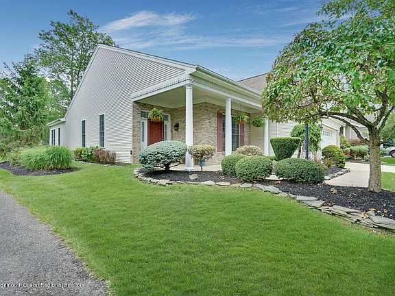 AVAILABLE FOR IMMEDIATE OCCUPANCY. WONDERFUL TOLL BROS ST. TROPEZ SITUATED ON PICTURESQUE 7TH HOLE OF 18 HOLE CHAMPIONSHIP GOLF COURSE FEATURES BRICK FRONT, PROF'L LANDSCAPING, COVERED PORCH, HARDWOOD FLOORS, FOYER W/COFFERED CLG, LIBRARY W/DBL DOOR ENTRY & BUILT-IN BOOKSHELVES, DINING RM, LIVING RM & FAMILY RM ENJOY 3-SIDED GAS FIREPLACE, KITCHEN W/GRANITE COUNTERS, UPGRADED CABINETRY, NEWER SINK, SUNROOM W/VAULTED CLG& SLIDER TO PATIO W/ELECTRIC AWNING, MASTER BDRM W/WALK-IN CLOSET, MASTER BATHRM W/JETTED TUB, WALK-IN CLOSET W/CUSTOM SHELVING, GARAGE W/STORAGE ABOVE, NEW GAR DR OPENER, BRAND NEW WASHER/DRYER, CROWN MOLDINGS & CHAIR RAIL, PRIVACY W/NO HOMES ACROSS THE STREET FROM THE FRONT OF THIS HOUSE. BUYER RECEIVES 1 YR HMS HOME WARRANTY AT CLOSING.