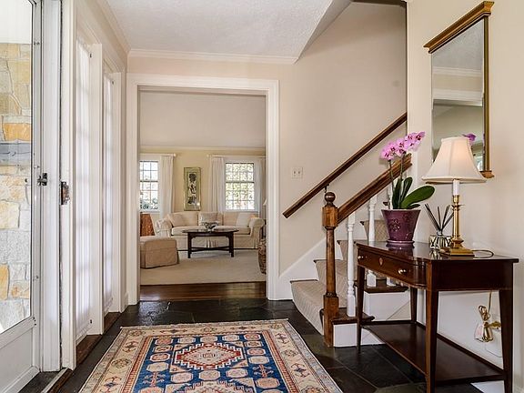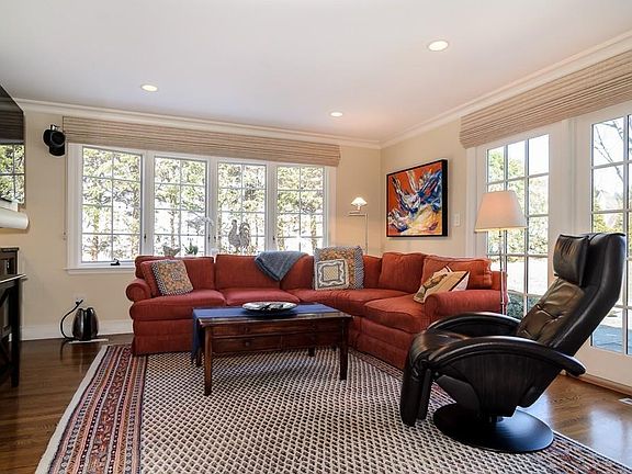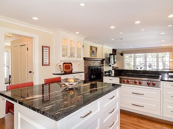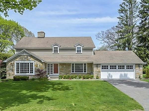 Beautiful masonry faced home on coveted dead-end road that puts you directly onto the stone-dusted Town Brook Path convenient to town center and schools. The interior features sunlit living room with gas fireplace and spacious dining room that flows to open kitchen/family room layout. Kitchen was recently updated with all high-end appliances and cozy wood burning fireplace w raised hearth & custom mahogany mantle along with custom built wine dry-bar and a slider to the back bluestone patio highlight the family room. Laundry and office (that has 5th bedroom potential) round out the first floor. 2nd floor offers 4 well appointed bedrooms and 2 renovated full baths. Other items to note are Attached 2-car garage, basement play room, central a/c and professionally landscaped yard w/ irrigation system. LOCATION = PRICELESS