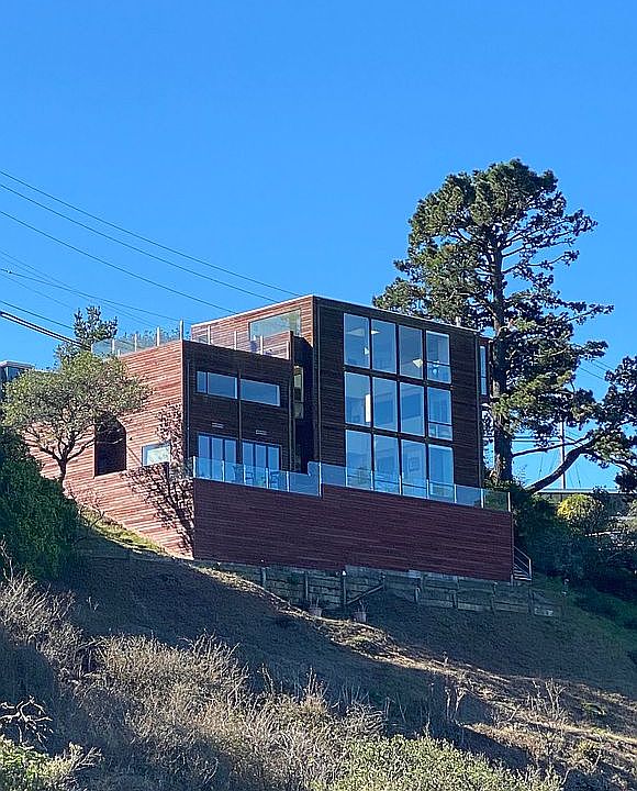 Three story modern home with spacious views of Sausalito, San Pablo and San Francisco Bay. Rooftop deck with similar views and the Golden Gate. Redwood exterior. Two fireplaces and new hardwood floors. Multiple living spaces throughout the home.
