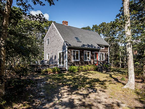 Time to enjoy the Vineyard lifestyle in this tranquil home in the highly coveted community of Island Grove! Nestled on a half-acre wooded lot, this sun filled home includes 4 bedrooms, 2 full baths and living room with wood burning fireplace. Sliding doors off the living room open up to a deck for grilling your catch of the day or sunbathing. Wash off the sand in the outdoor shower after a long day at the beach. Association tennis courts are down the street. This well cared for home is being sold turn-key. The kitchen is outfitted with quartz countertops and stainless steel appliances. Mini-split air conditioning on order for every bedroom. Future expansion opportunity exists with town sewer available, allowing for 2 additional bedrooms and an in-ground pool with proper permits. This house has a very strong rental history with terrific reviews. Property is on a cul-de-sac with 9.6 acres of Association land abutting the backyard. Located just half a mile from Morning Glory Farm and the bike path, this home is in an ideal location for easy access to Edgartown, South beach and Edgartown Great Pond, where you can enjoy paddling and kayaking to the South Shore barrier beach.
