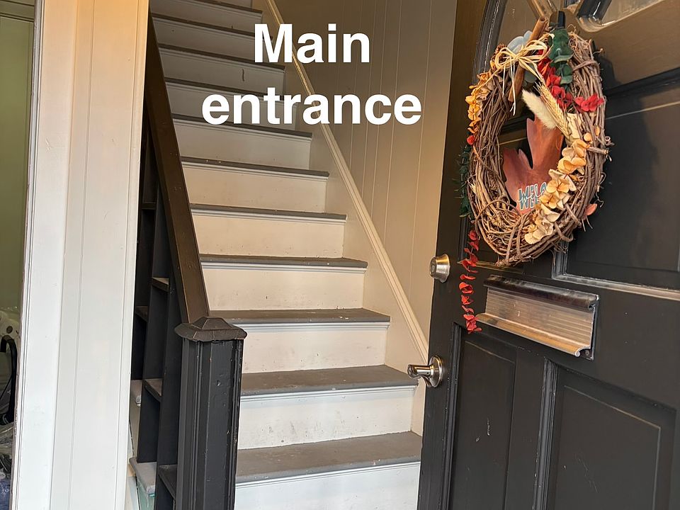 Located on 2nd floor of a 2 family house. Very quiet street, close to everything. There is parking on street right at front door and possibly 1 spot in driveway. Small eat in kitchen with "apartment sized" fridge. Apartment is ideal for a couple/roommates or a small family.