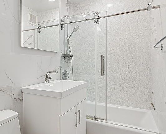 Finally . . . a meticulously renovated 2-bedroom/2-bath in prime Forest Hills! At approximately 1,240 sq. ft., this sizeable home provides the open floor plan you’ve been looking for. The generous layout offers two master-sized bedrooms, one with en-suite bath. Rich, wide plank wood flooring flows throughout the home. The kitchen and dining room have been combined, to create a spacious, open kitchen with center island . . . the perfect layout to entertain guests. The kitchen is equipped with white Fabuwood cabinets, quartz countertops and European appliances, including Bosch dishwasher, Liebherr 48” side by side refrigerator, Superiore gas range/oven and XO range hood. No detail has been spared, from bathroom barn doors to quartz windowsills! Enjoy sunlight all day long, with both northern and southern exposures. You’ll love the expansive closet space!