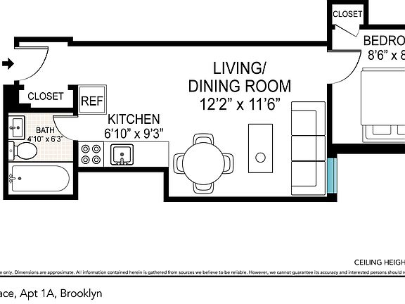 Cozy One-Bedroom Apartment Once you walk through the foyer--with a large closet--you enter into a spacious, open-plan living space. Within this section of the apartment you will find a kitchen and plenty of room for a dining area, living room and office space. Towards the rear of the apartment you will discover both the comfortable bedroom. No need to go outside to do laundry as there are communal machines on the lower level of the building. This centrally-located property is just steps from popular Court Street and Smith Street shopping, restaurants, cafes and boutiques. The subway is close by as well.
