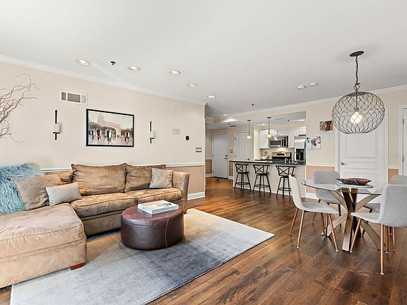 Modern kitchenElegant crown moldingRich hardwood floorsStainless steel appliancesGranite countertopsSpacious designer baths
