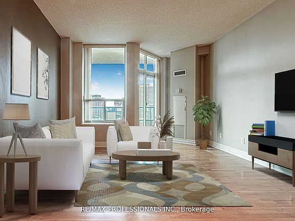 Welcome to The Alexus in a demand location of downtown Toronto! Fabulous & huge 1000+ square foot unit with stunning views! Perfect for people downsizing, moving up or first timers! The functional foyer with mirror closet doors greets your guests. Relax and entertain in your spacious and bright open concept living/dining room. Gleaming hardwood flooring in living and bedrooms ( no carpet ). Gorgeous modern kitchen with stainless steel appliances, stone type counter and glass cabinet to inspire the chef from within. Walk-out from the living room to the large balcony and enjoy all the scenery has to offer. What a bonus to have 2 full bathrooms. Hugh primary bedroom with ensuite 4Pc bath, walk-in closet, ensuite laundry and walk-out to solarium to sit and enjoy your morning coffee. Close to all amenities! 1 parking spot included! Get all this for under $500,000. A must see unit at this price. Hurry and view it today before it's too late!