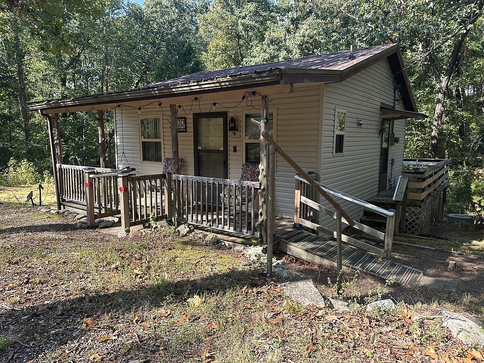 Charming Kentucky Lake area cabin that has been well cared for! One bedroom/one bath, built with custom cabinetry and vintage details throughout. This double-lot property also has a carport with electric run to it. Storage building has electric, concrete floor, and huge workbench. Metal roof, large sun deck, covered front porch, extra storage in unfinished basement.