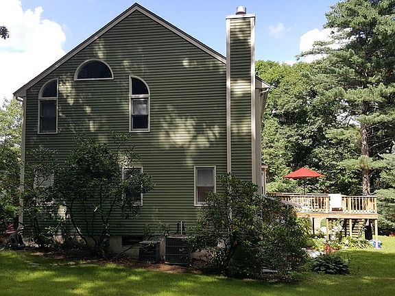 8 Room/4 bdrm/ 3 Full Bath,3068 sq. feet, excluding newly finished basement of 900 sq. feet. Many new updates, all wood floors in first floor, newly designed master suite w/dressing room. Beautiful 8/10 acre lot on cul-de-sac abuts conservation land, walk to train & center. Hot water heat w/5 zones, central A/C 2 zones. Lovely white eat in kitchen with granite counters, stainless steel stove & dishwasher, granite farmers sink , tiled backsplash. Huge deck off of kitchen 16x16, plus another huge entertaining deck at back of property 35x35 w/pergolas. Title V passed w/new leaching field & newly grassed yard. New sprinkler system. Cathedral ceilings in master bedroom & family room both w/wood floors & new large ceiling fans. Cedar Storage Shed 16x10 w/shelves. 2nd floor laundry. NEW roof on house & shed April 2018 w/30 yr. shingles,10 yr. free labor warranty. Brand new washing machine HE Samsung, June 2018. Newly remodeled bsmt has new tile,carpeting,ceiling & Anderson Slider to yard.