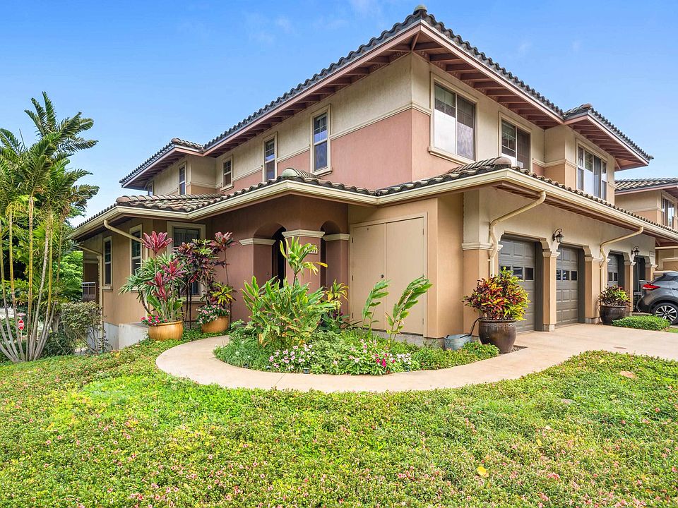 Spacious 3 bed / 2.5 bath luxury condo with approximately 1,724 sq. ft. in the highly desirable gated community of The Villas at Kehalani, nestled on the cool slopes above Wailuku. This beautifully maintained residence offers an open-concept living and dining area that flows seamlessly to a generous 177 sq. ft. covered balcony/lanai, perfect for relaxing and enjoying the gentle tradewinds and views of Central Maui and the surrounding hills. The well-appointed kitchen features solid-surface countertops, generous cabinet space, and a breakfast bar ideal for casual dining or entertaining. All three bedrooms are located upstairs for privacy, including a comfortable primary suite with walk-in closet and ensuite bath. Two additional bedrooms share a second full bath, with a convenient half bath on the main level for guests. Additional highlights include a roomy attached two-car garage, split A/C, in-unit laundry, and ample storage. The Villas at Kehalani is a beautifully landscaped, gated community within the Kehalani master-planned development, just minutes from Wailuku town, medical facilities, schools, shopping, dining, and a short drive to Kahului and the airport. Experience the comfort, convenience, and elevated lifestyle of West Maui mountain living at this exceptional Wailuku condo. HOA fee includes water/sewage, waste disposal, landscaping/irrigation, homeowner's insurance, exterior maintenance and repairs.