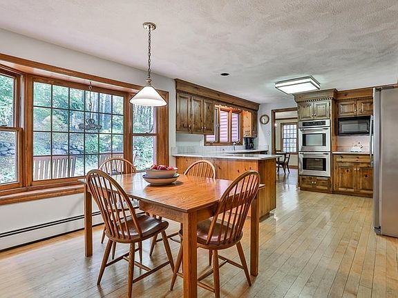 Enjoy the quiet, private, and tranquil surroundings of this Boxford home. Sited on 6+ acres, nestled on a knoll enveloped by Boxfords natural landscaping. Experience the beauty and sounds of wildlife on Baldpate Pond from the huge private deck. Eat-in kitchen has all stainless steel appliances (dbl ovens), granite counters, large pantry and peninsula for casual meals. Step from the kitchen into the comfort & cozy family room with beautiful wide pine floors, wood FP, wood beamed ceiling and access to the exterior deck. Formal, gracious LR & DR with FP the perfect setting for those special occasions. 1st flr office with built-ins & spectacular views. Take advantage of all updated baths & 1st flr laundry room. Large Master Ste. with dressing area and bath. 2nd flr includes 3 additional generous size bedrooms. Finished LL makes a perfect playroom and/or office. Unfinished area includes a workshop. Just steps from Boxfords 66 Acre Baldpate Pond with year round activities and trail access