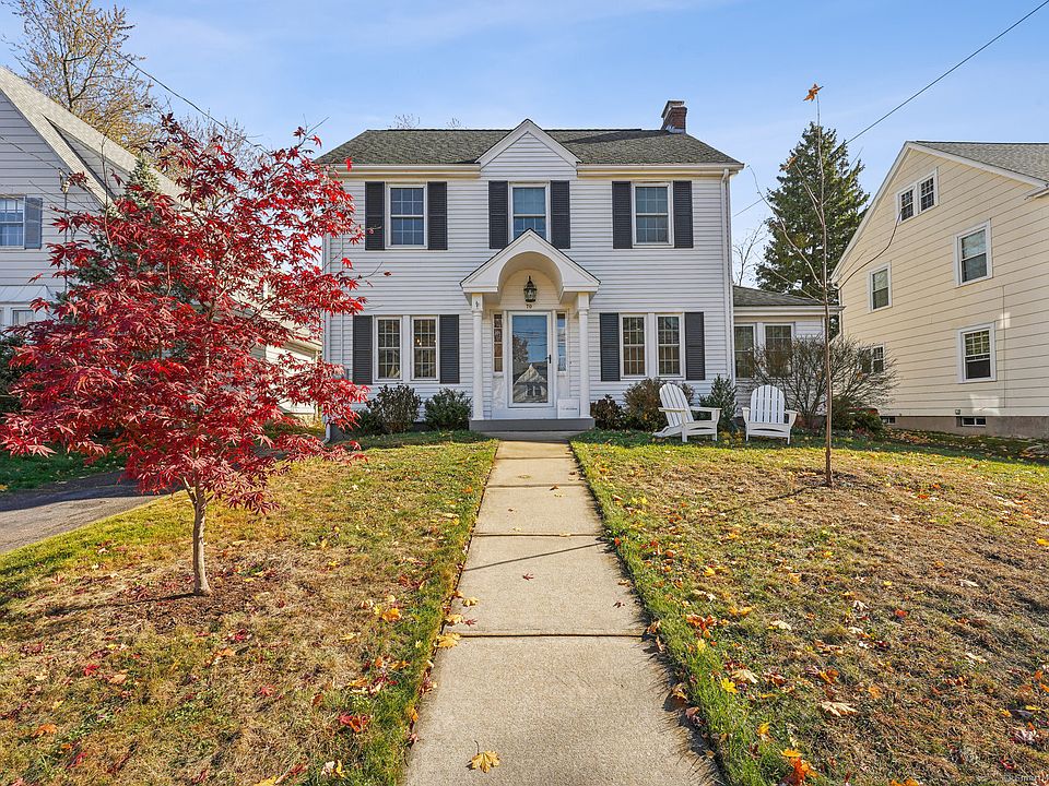 This beautifully updated Colonial, built in 1927, combines historic charm with modern convenience. A welcoming portico invites you into a home with classic hardwood floors throughout. The main level features a well-appointed kitchen with quartz counters, a breakfast bar and a stylish tile backsplash, leading seamlessly into the formal dining room, where an original built-in hutch adds vintage character. The spacious, front-to-back living room centers around a cozy wood-burning fireplace, perfect for gatherings, while the adjacent sunroom offers direct access to the backyard and is ideal for relaxing or entertaining. A convenient half bath completes the main floor. Upstairs, the primary bedroom offers a spacious and tranquil retreat and hosts a large closet and charming window seat. Two good-sized bedrooms, a full bath and generous storage complete the second floor. The finished third floor, currently set up as a home office and fourth bedroom, provides flexibility for various needs and the partially finished lower level includes a rec room, laundry area and utility/storage space. Outside, two decks overlook a private yard and the one-car detached garage will keep your vehicle free of snow and debris. Updates include new windows, hot water heater and sump pump. Ideally situated near parks, restaurants and shopping, this home is a rare find that blends timeless style with thoughtful upgrades.