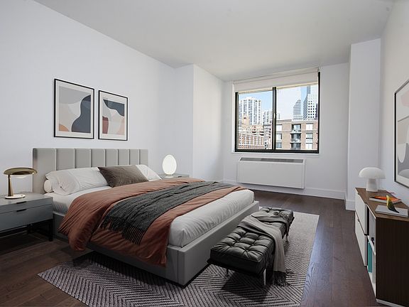 Riverwatch is a pet-friendly 24-hour concierge luxury building with a roof deck, on-floor laundry, bicycle storage (fee), and a FREE fully equipped gym.