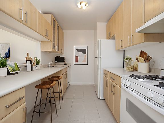 Roof deckWater viewsSpacious alcove studioNew stainless-steel appliancesLarge closetsPass-through kitchen