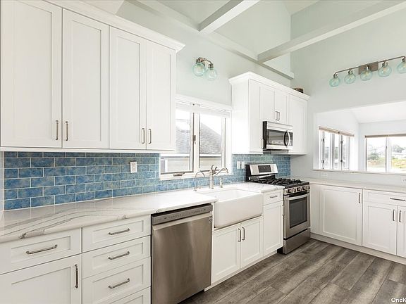 This is your chance to live on the water in the Mandalay section of Wantagh. This coastal contemporary waterfront home features an open floor plan, cathedral ceilings, and a completely renovated kitchen. Full basement with plenty of storage and a new washer and dryer. Brand new pavers will bring you to an updated yard that features a 50 foot bulkhead with a new floating dock on a wide canal that is every boaters dream. Close to public transportation, highways, parks and minutes from Jones beach. Wantagh schools. Flood insurance around $700 a year.