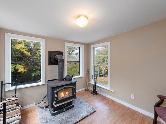Perched high & dry on a picturesque 5.30-acre lot along a scenic roadway in New Hampton, this recently renovated 1989 single-wide mobile home offers the perfect balance of privacy & country convenience! Step inside through the welcoming mudroom, where a wood stove warms the space & invites you to unwind. The mudroom opens into a cozy living room, creating a comfortable space for relaxation. Just off the living room, you'll find the primary bedroom, complete with a 3/4 bath that features a cute corner sink. The kitchen space has been updated with a new backsplash while also offering sleek stainless steel appliances. Adjacant to the kitchen awaits a functional dining space that is perfect for casual or intimate meals. The floor plan then continues through the hall, which also serves as a full laundry area. Off the hall, a full bath offers new flooring & a custom refurbished vanity, adding a unique touch of character. Completing the living space is a sizable second bedroom, perfect for guests or additional family members. Outside, you'll love the private backyard, which comes to life in the summer as delicate Lady Slipper's bloom along the woodline. Additionally, the property abutts acres of conservation land! Despite the peaceful country setting, this property is just minutes from Interstate 93, offering easy access to nearby amenities. Don't miss out on this perfect blend of country convenience & comfort! ALL OFFERS DUE BY 1pm on Monday, 10/21/24.