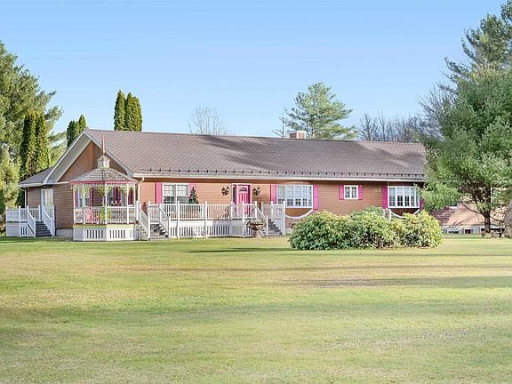 What a beautiful executive estate with 50 +/- acres, barn and 6000+ sq ft of living! Not your standard Ranch-style home! This 3-BR, 3 BA house sits on a large patch of beautifully landscaped yard, nestled amongst a backdrop of gorgeous trees, for a total of 50+ acres of purely stunning land. With nearly 6,000 sq ft of living space, there is plenty of room to sprawl out. This home boasts 3 bedrooms on the main level, double living room, formal dining room, and large an eat-in kitchen. If that sounds like ample space, you'll be blown away when you step into the fully finished basement, which offers additional rooms to use in multiple ways: living quarters for extended family, a home gym, an office, or whatever suits your needs and lifestyle. Outside, enjoy the serene surroundings from the front porch and the back deck and gazebo. You will be so enchanted by the tranquility of this property that sits on a knoll that you may find yourself wanting to spend most of your time outside! The meticulous landscaping is charming and lends an air of whimsy. The attached 3+ car garage offers plenty of storage space for lawn and recreational equipment, The 40x70 pole barn with heated tack room is certainly an unexpected bonus to this already amazing property. Horse enthusiasts, take note! This exceptional property offers so much, that it must be seen to appreciate it all. If you are ready to own a true piece of Vermont paradise, this home just may call to you!