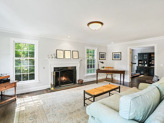 This sophisticated Colonial at 70 Branchville Road offers over 5,000 square feet of beautifully designed living space on 1.34 level acres in the heart of Ridgefield. The home features twelve main rooms across three levels, including formal living and dining rooms, a recently renovated kitchen with high-end appliances opening to a breakfast area and family room with vaulted ceiling and stone fireplace, plus four bedrooms (lives like a 5) and 5.1 bathrooms. Architectural details include extensive millwork, hardwood floors, French doors, and crown molding throughout. The property boasts mature landscaping with specimen plantings, stone walls, a rear terrace perfect for entertaining, and convenient access via two driveways. This exceptional estate combines the tranquility of country living with sophisticated design and modern amenities, creating an ideal sanctuary for both everyday comfort and elegant entertaining. Located within walking distance to Ridgefield's shops, restaurants, and schools, yet just minutes from major commuting routes and Metro-North rail service, it offers the perfect balance of serene privacy and convenient accessibility.