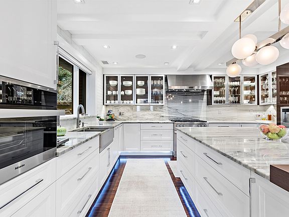 Be prepared to be mesmerized by this jewel in the Bluff section of Fort Lee. Enjoy resort-style living in this gorgeous home with a meticulously maintained slate roof and a stunning pool, Gut renovated in 2018-2019 with updated cabinets, mechanicals and appliances throughout. Further updated in 2021-22 with a new Trex pergola with weather protection, a 24KW Generac whole-house generator, and a WiFi-based irrigation and landscape lighting system for both front and backyards. Over $100k has been spent on these recent updates! The gourmet kitchen features sleek cabinetry, state-of-the-art Miele appliances, a large island, and mood lighting. The primary suite is a sanctuary of comfort, featuring a private balcony with access to the patio and pool, walk-in closets, an office nook, a sitting area, and a WOW bathroom - with free standing tub and a steam room! There are also two other en-suite bedrooms with custom cabinetry. The first floor boasts new radiant heating and includes a huge office/formal living room with a custom gas fireplace. Sonos sound system and speakers throughout the house and pool area for seamless music streaming. All rooms have ethernet connections for fast connectivity. Ruckus wifi routers ensure great wifi connectivity throughout the home. The basement is fully finished with a second kitchen, an amazing custom built bar area, a gym area, an office, and a play area, perfect for indoor entertaining. This home reflects meticulous attention to detail, offering unparalleled luxury and comfort. This won’t last.