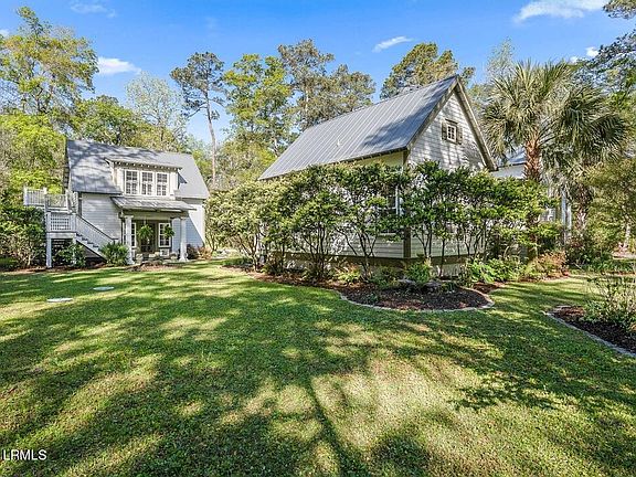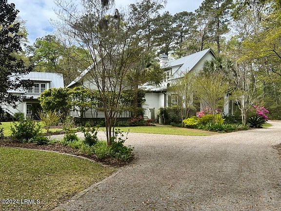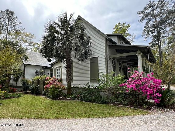 Eric Moser designed home, based on the Coastal Living 2002 Cottage of the Year & built by Brandt construction. W/detached 2 bedroom guest house & oversized 2 car garage. Main house includes, yellow pine flooring throughout 1st floor, 10' coffered ceilings in the great room. Kitchen features custom cabinets, wolf gas stove-top, copper sink & butcher block counters. Master showcases exposed beam & vaulted ceiling with a walk-in tiled shower w/5 spray feature & walk-in closet. Additional features: 2 custom fireplaces, crown molding, 3 gas lamps at entrance, tankless water heater, spray foam insulation, water filtration system, refastened metal roof, 24hr monitored security system, GE washer & dryer, & conditioned crawlspace. Property is adorned with Live Oaks, Palms and Magnolia trees. Bull Point is a gated, maritime forest on Huspah Creek with 10 park areas, walking trails throughout, 3 Deep Water community docks, an out island, river cabin, 3 fresh water lakes, club house, fitness center, sauna, tennis and pickle ball courts, pool, bird sanctuary and so much more.....A must see!!!