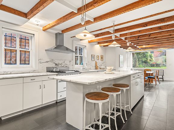 Come inside to find exquisite original details that have been lovingly preserved, including two working fireplaces, crown moldings, and built-ins throughout. Iron tubs in the renovated bathrooms offer the perfect space to unwind and relax. The entire garden level, designed by the renowned architect Annabelle Selldorf, features a massive picture window, a chef's kitchen with marble countertops, top-of-the-line appliances, extra refrigeration and ample storage in a large pantry. Since the house is semi-detached, there are additional windows on the southern side, making it an unusually bright home. (Not to mention an outdoor side entrance with ample storage for bicycles and firewood). This home also has central air-conditioning.