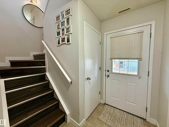 Perfect for First-Time Home Buyers or Professionals! Pride of ownership is evident in this well-maintained 2 bedroom, 2 bathroom townhouse in an 18+ community with low condo fees. With a neutral paint palette, vinyl flooring, updated bathrooms, and large windows providing excellent natural light. The main floor offers a versatile layout with a bedroom, full bathroom, laundry/storage room, and access to your single car garage! The upper level will impress with an open-concept living and dining area that flows seamlessly into the functional, stylish kitchen with stainless steel appliances. The large primary bedroom is privately located off to the side and includes an updated 3-piece bath with a gorgeous walk-in shower. Enjoy the cozy front patio overlooking green space. Additional features include a single attached garage with parking pad and convenient proximity to visitor parking. Easy access to major transportation routes including the Yellowhead, Anthony Henday, and Highway 21.