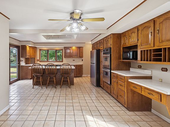 Now on the market in Wheeling! Nestled on a quiet cul-de-sac, this 3 bedroom, 2 bath ranch offers both convenience and charm just minutes from the park district, Metra train station, and Wheeling's famous Restaurant Row. The spacious kitchen features an island, stainless steel appliances with a double oven, abundant cabinetry with a built-in desk area, and plenty of room for a large dining table. A partially finished basement adds a wet bar and a flexible bonus room with ensuite bath. Step outside to a fully fenced yard with mature trees, a deck with fire pit area, and garden space. Recent updates include cedar siding (2022), new furnace & A/C (2023), and gutter guards. An extra long driveway and 2 car garage complete the package, making this home move in ready with space to enjoy inside and out.