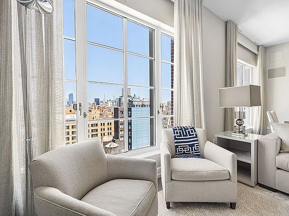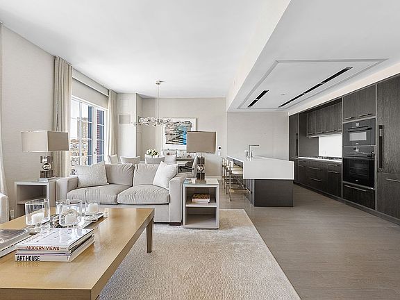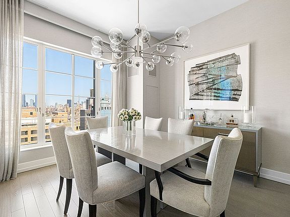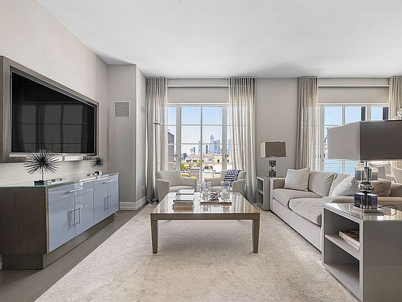 PENTHOUSE C commands breathtaking panoramic views, showcasing Hudson Yards and the Empire State Building to the north and the iconic Freedom Tower to the south. The expansive great room has been thoughtfully designed to create three distinct yet seamless living experiences: a refined seating area, an elegant dining space, and a state-of-the-art gourmet kitchen. Custom details throughout include Nest thermostats and bespoke art-like frames for every television. For those seeking convenience, the residence is also available fully furnished and turn-key.