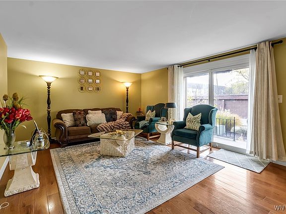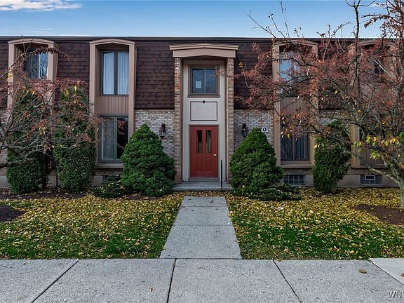 MUST SEE!!! SPACIOUS & beautifully appointed, brick-front luxury condo in Amherst; MOVE-IN READY with highly rated Sweet Home Schools. This desirable, first floor unit rests in a peaceful development, steps from the University at Buffalo, Sweet Home High, Tim Hortons and more. Featuring a charming kitchen w/distinctive counters, white wood cabinetry and tile backsplash with attractive finishes opening to the dining area and spacious living room with a sliding glass door leading out to a covered rear porch, perfect for sipping your morning coffee, and a handicap accessible ramp. Enjoy the gorgeous hardwood flooring throughout and the renovated bathroom is exquisite with tile floors & a glass enclosed tile shower surround with accent. Impeccably kept with choice finishes and an attached, one car garage with in-unit, 1st floor laundry in one of the bedrooms for EASE OF LIVING, optional coin laundry in the basement with a private space providing optimal storage. This picturesque home has many updates including paint 2020, windows 2019, HWT 2016, a newer furnace, kitchen & bathrm with incredible amenities including a beautiful pool, pickleball courts, community building, outdoor picnic areas and walking distance from the bike path & Ellicott Creek! Low taxes, great schools and steps from the conveniences of University Place! Showings begin Friday, 11/28/2025.