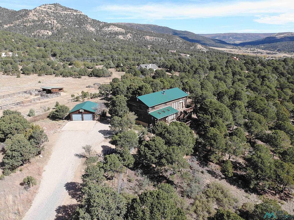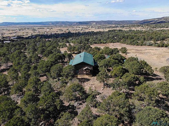 Envision yourself taking in the tree lined views of the surrounding mountains and mesas from the comfort of your living room. The wood burning fireplace is sure to keep this authentic log cabin warm and cozy when the first snows hit! The open concept layout perfectly blends rustic appeal, with modern touches. Tall ceilings give a feeling of grandeur, with natural wood and tile finishes, as well as large windows which envelope the space with warm, natural lighting. The home consists of 4 nice sized bedrooms, and 2 full bathrooms along with a half bath for guest convenience. A sun room, and exterior deck are great for relaxing, and taking in the scenery. This home sits on 2.82 acres, with mature natural landscaping. A nice 2 car detached garage is also included. Just a short drive to town, but feels miles away! Call to view today