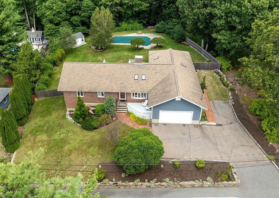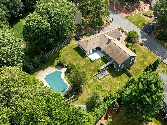 Welcome to 70 Christina Drive, a sprawling ranch situated on a private, elevated lot in one of Braintree’s quiet enclaves. The main level offers 4 bedrooms, including a spacious primary suite, with flowing hardwood floors throughout. The kitchen anchors the home with its oversized island—ideal for entertaining—and flows into the family room highlighted by stunning vaulted ceilings. From there, step into a beautiful four-season room overlooking the serene, private backyard. The backyard features an in ground pool and patio. Nestled against the woods, the property provides both privacy and a relaxing retreat The lower level adds nearly 1,000 sq ft of versatile living space across three rooms, complete with a full walkout and bathroom. Whether you envision offices, a gym, playrooms, or guest quarters, the options are endless. With its combination of privacy, space, and flexibility, this home is an ideal retreat with convenience to everything Braintree has to offer.
