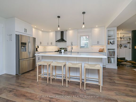 Welcome to this stunning, move-in ready detached century home located right in the vibrant heart of Alliston! Double Wide Lot with Potential to Sever! Fully renovated from top to bottom with no detail overlooked, this home combines modern design, quality craftsmanship, and a prime location. Step inside to discover a bright and airy open-concept layout featuring brand new flooring, pot lights, and stylish finishes throughout. The custom kitchen is a chefs dream, boasting quartz countertops, High end stainless steel appliances, gas stove, sleek cabinetry, and a spacious island perfect for entertaining. Spacious living room with built in napoleon gas fireplace, built in storage and pot lights.Gorgeous Main floor laundry/mudroom with custom sliding door and 2pc powder room.Upstairs, you'll find generously sized bedrooms with closets and beautifully updated bathroom with freestanding tub and glass steam shower, towel warmer and Tv.Outside, enjoy a private backyard perfect for summer gatherings or cozy evening fires. Fully fenced yard with 2 side gates, and new rear deck and pergola . Fully finished, heated and insulated detached garage currently used as a private home gym. All major systems have been updated including Furnace, AC, 200amp panel, siding/soffits, windows, doors, napoleon gas fireplace and more, giving you peace of mind for years to come. 2 separate newly paved driveways with extra parking for trucks, trailers and toys. Located within walking distance to downtown , shops, restaurants, schools, and parks!