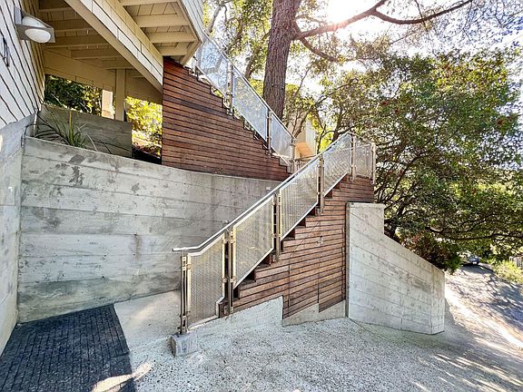 This beautiful home in the Highlands neighborhood of Millbrae is both impressive and commanding with its tall stance that masterfully blends modern architecture with the surrounding landscape. This is not a run-of-the-mill Millbrae home. A striking wood-paneled staircase with stainless-steel railings brings you to the front door. A bright and airy large living room is accentuated by large picture windows and sliding doors that bring the outdoors in. The floor plan brilliantly flows as does the gleaming hardwood flooring. Both living room and dining room offer access to the deck and patio which are both something to behold. Rounding out the accommodations of the main level is the laundry room and a powder room by the foyer. All three en-suite bedrooms and three bathrooms are found on the top floor with high ceilings, walk-in closets, and access to sizable balconies. Wonderful views of the surrounding hills can be admired from both inside and outside areas of the home.