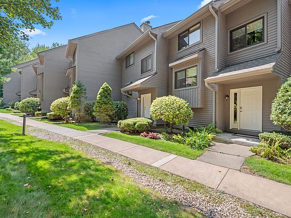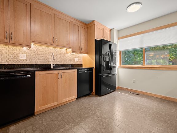 Here's a well updated condo with convenient floor plan and modern features. The updated kitchen comes with maple cabinets, granite countertops, a new backsplash, a GE induction cooktop, convection microwave, and full-size fridge, plus two BOSCH dishwashers, dual sinks, and disposals. The main floor updated flooring, windows, and a cozy gas fireplace. The home features zoned HVAC with a central humidifier and newer heat pump for year-round comfort. A hybrid water heater ensures efficiency, while a dining area with a mid-century chandelier and a sunken living room with built-in shelves lead to a deck overlooking the yard. Upstairs, the primary suite includes an updated bathroom with double vanities, a large closet, and two additional guest rooms, with a full bath and laundry rounding out the second floor. The finished walkout lower level adds extra space with a full bath, bedroom or gym, and a spacious rec or media room with a new patio.