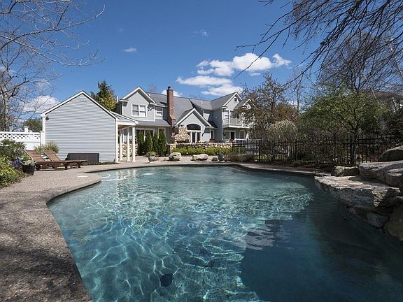 Price just lowered!! This stunning sun-filled custom residence is set on almost an acre of resort-like grounds in Precinct 1 near the Dedham Country & Polo Club. Entertain on the large deck overlooking the manicured grounds, Jacuzzi tub, outdoor fireplace, sauna, and pool w/waterfall abutting conservation area. The grand foyer opens to an elegant dining room, open-plan kitchen, & family room w/ a fireplace & cathedral ceilings. 1st floor also offers a separate suite for in-laws/au pair complete w/ private entryway, sitting room, bedroom, & full bath. The 2nd level is comprised of a grand master bedroom suite with a fireplace, sitting room, balcony, lux bathroom, and walk-in closet; three additional bedrooms; and a bathroom. Other features include mahogany flooring, custom built-ins, marble floors and countertops, and ample storage. Central a/c and two-car garage are included. This home is truly an oasis with easy access to Legacy Place, highways, and Bosto