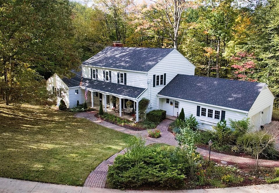 There is a private 20x40 in-ground heated pool (3.5 feet to 8 ft) with a detached 2-car garage that includes a half bath and electric — currently used as a pool house. There’s also a 2-car attached side-facing garage and ample off-street parking on the concrete drive.