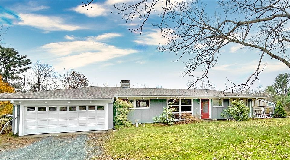 Surrounded by nature, this California ranch features many 2020 improvements including three bedroom septic system, 50 year roof, kitchen, flooring, shower stall bath plus seller-owned solar panels with backup battery that provides low cost living. The home is flooded with light throughout the day via oversized windows and features an open flow living/dining/kitchen with pellet stove and full bath w/ shower & radiant heat. The mudroom/laundry area is accessible to garage and back yard. Three bedrooms and another full bath on the other side of the living space with access to the greenhouse. Oversized deck spans the entire south-facing back of the home. Oversized one car garage and walk out basement accessible from outside. Barn and two other shed/outbuildings provide extra storage. Frontage on Daniels, gas & sewer in street...potential for development. Buyers to do due diligence. Open house 11am to 1pm Saturday or call for private showing.