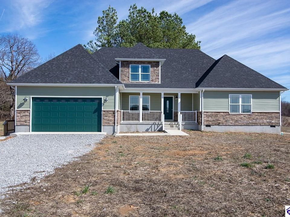 STUNNING NEW CONSTRUCTION IN MEADE CO. Right off Hwy 313 and just inside the Meade Co. line, this gorgeous home sits on 1.37 acres....one of the prettiest lots in the subdivision. It has a covered front porch, covered patio and private deck off the Master Suite. The front door opens into a grand foyer with a unique chandelier and looks directly into the Great/Living Room with a massive propane gas-log fireplace. The Great/Living Room features vaulted ceilings with beams and ceiling fans. It expands into the kitchen that boasts a breakfast area, island, lots of granite countertops and cabinets, stainless appliances and is convenient to the Laundry Room. The main floor Master Suite includes a triple trey ceiling, lots of natural light, a large walk-in closet, private deck and tiled bath. The bath has a double vanity, deep garden tub and large separate tiled shower. Down the hall is the half bath and another bedroom with full bath and walk-in closet. The upstairs hallway features an overlook into the Great/Living Room. Also, find the third bedroom, an office/study (with closet) and bath and additional finished attic space for storage. The floors are of quality laminate plank flooring throughout. Another unusual feature of this home is a sink and 220 service in the garage. The location is convenient to Ft Knox, E-town, and I-65. This beautiful home should check all the boxes including seller paid closing costs up to $6000 with full price offer. Schedule your visit today.