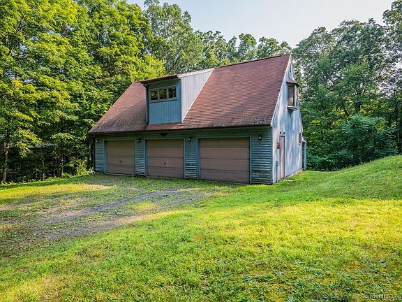 Small home with a BIG garage!!! Car buff? Mechanic? Landscaper? Home office needs? Charming two-bedroom home with knotty pine walls and some ceilings, a floor to ceiling natural stone fireplace w wood stove and surprisingly central vac! Primary bedroom on the main floor. Guess is it once was a hunting cottage. House could use some upgrades but it's the three-car detached garage with a full walk up second floor that makes this property so appealing. One bay of the garage is separated for workshop, insulated, and the wood stove keeps it toasty year-round. Two oversized bays are open and ready for toys. Lower level of the garage is set up with shed style space for lawn equipment, more toys and covered firewood storage. Walk up second floor would make a great office, studio or gym. Short walk over to Southford Falls for a picnic lunch or fresh air and exercise. Per last inspection - 2 beams in the basement are damaged and being professionally replaced. Dormer on garage also being repaired. There is definitely work to be done here, but this has so much potential for so many uses in that big garage w full second story.