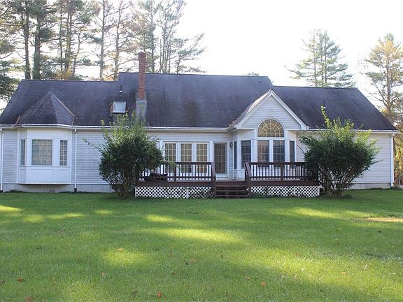 This home is majestic. It offers 10.66 acres of supreme privacy with a brook running through it. High architectural ceilings throughout, a huge kitchen, island, bay window breakfast area with tall windows all around, dining room, 3-4 bedrooms 2 baths, laundry room, beautiful fireplace in living room. There is a covered porch in the front and a deck in the back. A lot of open space, and a lot of wooded areas as well. The second floor has not been completed. There are studs, some electric, some plumbing on second floor. The septic has a 4 bedroom design, so it would be easy to add bedrooms upstairs and offices downstairs. There is a 2 car attached garage that allows you to go directly in to the basement, into the house, or outside. The land is flat, much of it is open and then you are surrounded with a wooded area. This house is hidden from the road and has its own private cul de sac.