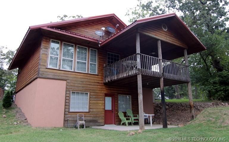 Lodge style cabin w/log siding, view of Dripping Springs, deck & patio & great 3BR floor plan. Affordable way to get away and enjoy Grand Lake. Makes a great VRBO. Marina for docking your boat. Peaceful setting and fun location on the lake.