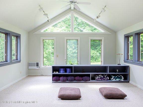 Welcome to 70 Duck Pond Road, a stunning home in the heart of Stone Ridge that's ready to go for all your home occupation dreams! This contemporary residence offers privacy, an abundance of space, vaulted ceilings and light, and the feeling of being immersed in nature. Set up as a perfect work from home residence, with 2 en-suite bedrooms (one being currently used as a healer's treatment room), there is also a full yoga studio with a vaulted ceiling, wall of windows, and separate welcome area. You'll need to check with the town for specific uses but we can easily imagine this for any kind of bodywork, therapy, facials, classes, studio, or more. The space is abundant and ready to be re-imagined by the next owners! The open floor plan has large windows which flood the interior with natural light, creating a warm and inviting ambiance throughout. The eat-in country kitchen is a chef's dream with a spacious island, offering the perfect setting for culinary creativity and entertaining guests. Head outside to the expansive private backyard, surrounded with trees, an ideal space for outdoor gatherings, gardening, or simply relaxing in the hammock. Centrally located in Ulster County, in the hamlet of Stone Ridge, this is super close to High Falls and Rosendale (under 10 mins), Kingston (15 mins), Woodstock (23 mins), and New Paltz (20 mins). Near local popular attractions like Ollies, Inness, Arrowood Farms, and Westwind Orchards and an abundance of local farm stands. There are also thousands of acres of hiking trails at nearby Minnewaska State Park and Mohonk Preserve, biking trails and numerous Hudson River activities all while being just 90 miles from the GWB.