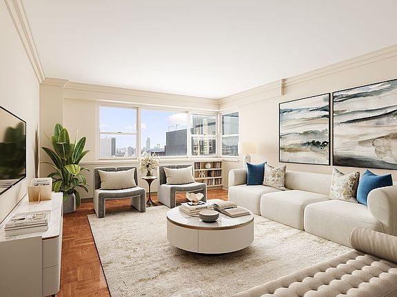 Perched on the 20th floor of the legendary Stewart House, this 1,108 SF residence offers abundant natural light, open city views, and generous proportions rarely found in Greenwich Village.